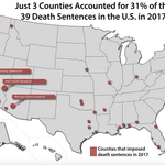Fewer than one-tenth of 1% of counties in the U.S. accounted for more than 30% of all the death sentences imposed in the United States in 2017. Three outlier counties — Riverside, California; Clark County, Nevada, and Maricopa, Arizona — imposed 12 death sentences.