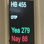 (Photo: A board displays the March 7, 2019 vote totals in the New Hampshire House of Representatives on HB 455, which would abolish the death penalty. New Hampshire abolished the death penalty on May 30, 2019, with both houses of the legislature voting to override the governor’s veto.)