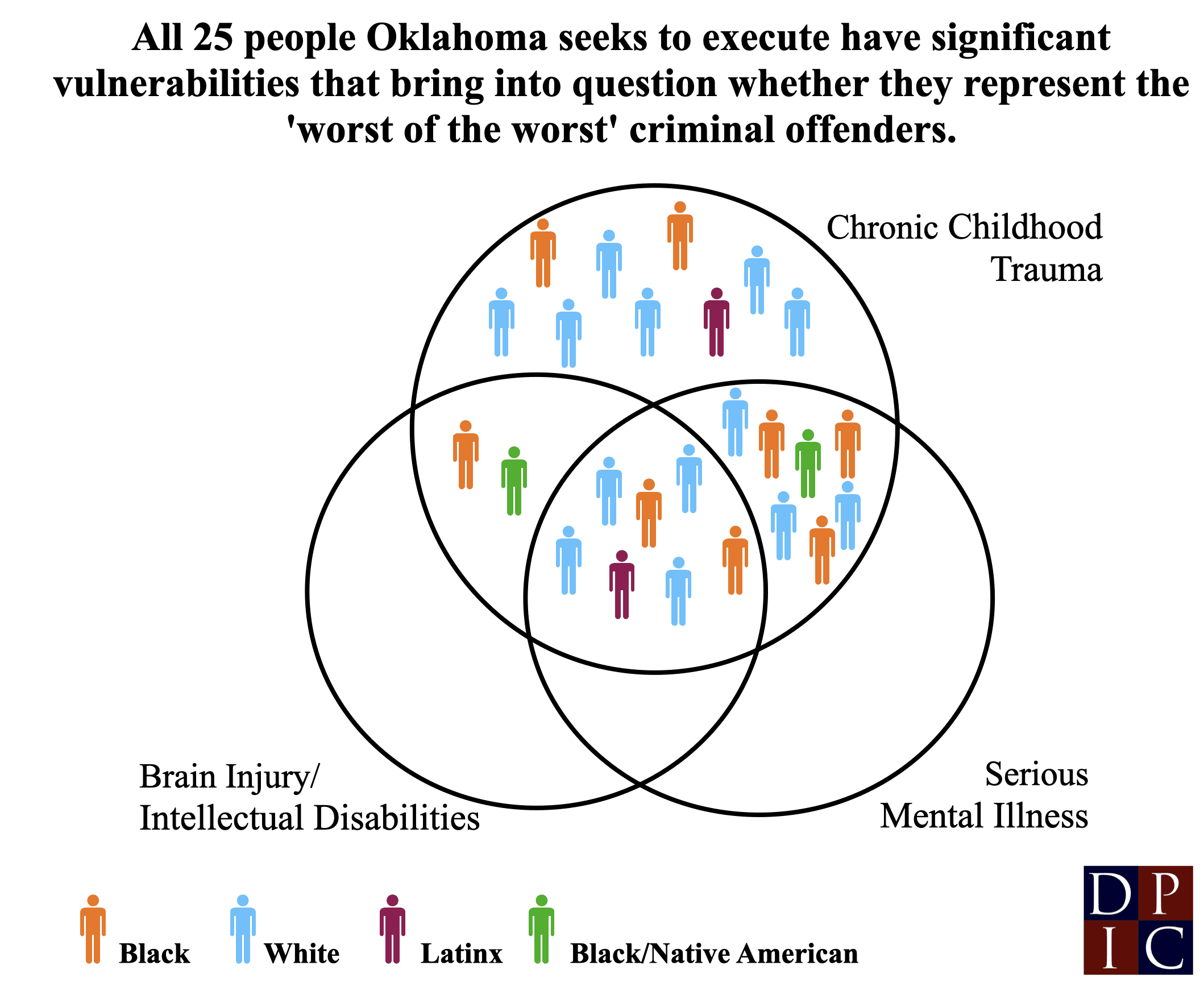 The 25 people Oklahoma scheduled for execution disproportionately represent the most vulnerable populations.The men scheduled for execution over the next two years are overwhelmingly members of highly vulnerable populations, rather than the most morally culpable offenders. Nearly all face one or more significant vulnerabilities, including serious mental illness, intellectual deficiencies, brain damage, and chronic childhood abuse and neglect. Seven of the ten Black men scheduled for execution were 25 years old or younger at the time of their crime, including three who were 20 or younger.
