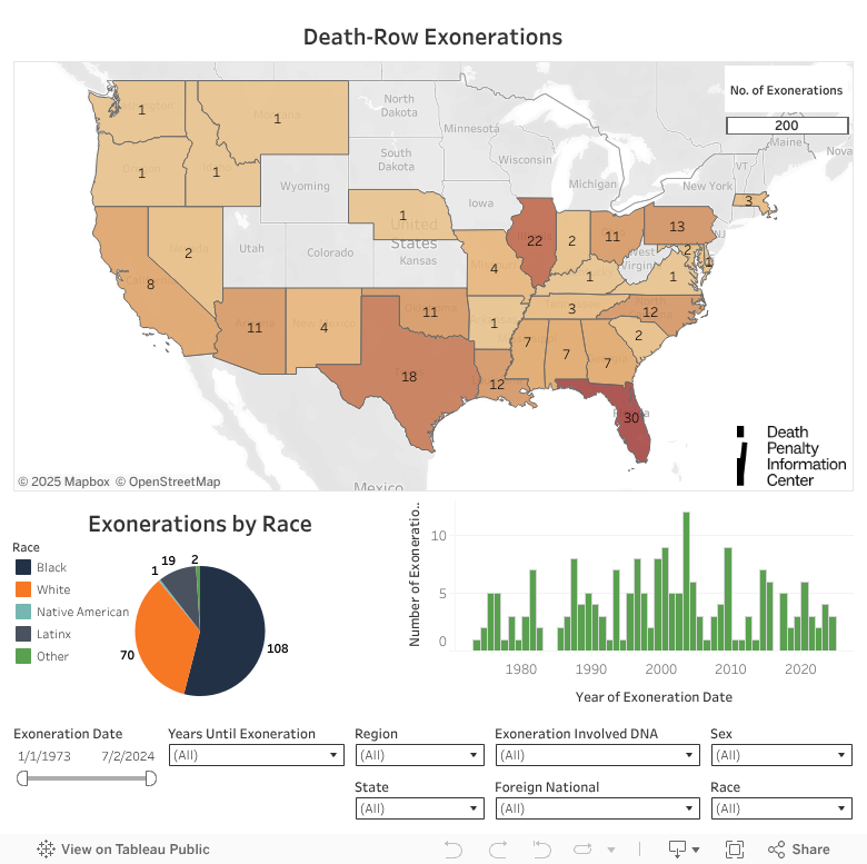 The addition of eleven more exonerations to DPIC’s Innocence List highlights the systemic failure of the U.S. criminal legal system to protect innocent defendants from wrongful capital convictions and, ultimately, from wrongful execution. The documented failure rate of the judicial process in these cases is alarming: one exoneration for every 8.3 executions. But while DPIC’s exoneration list is an important barometer in assessing the risk of wrongful conviction that innocent capital defendants face, it is a conservative measure of innocence.