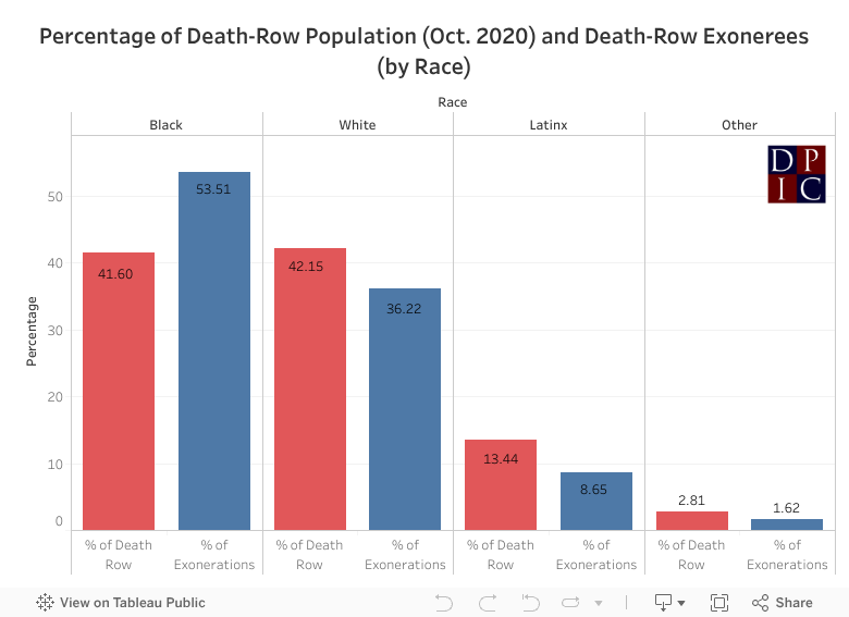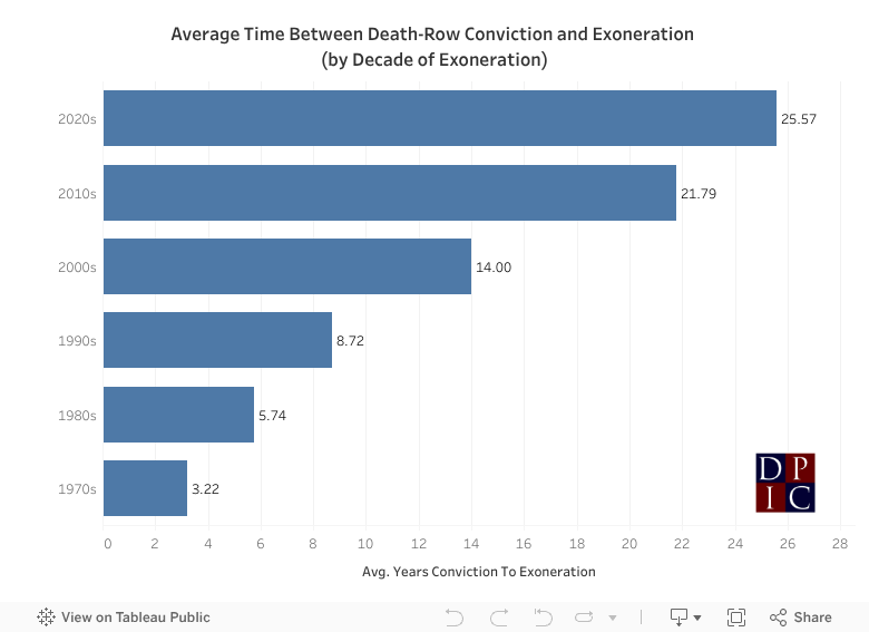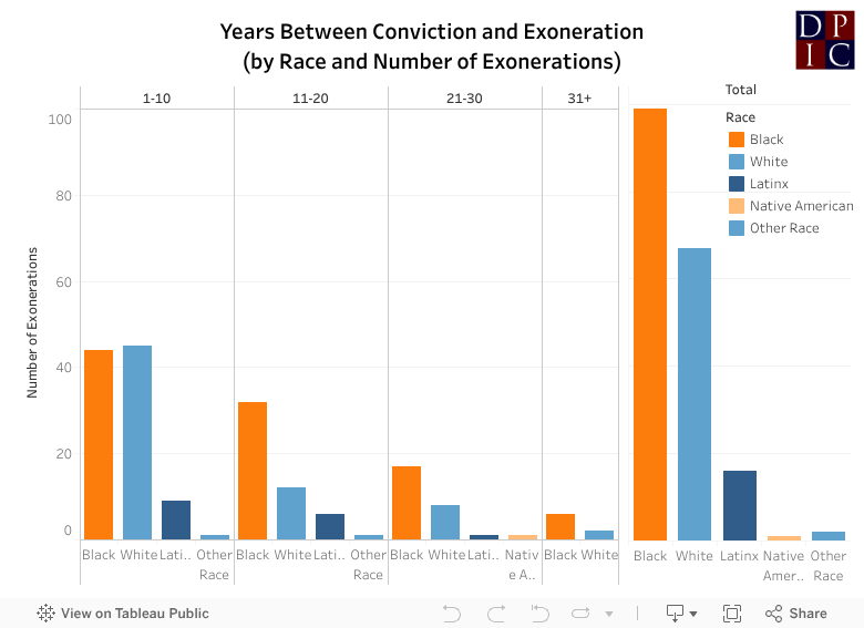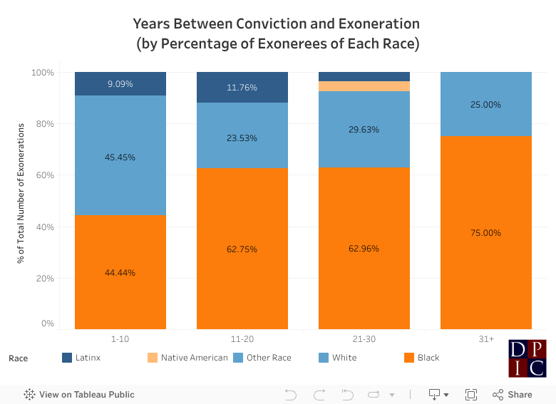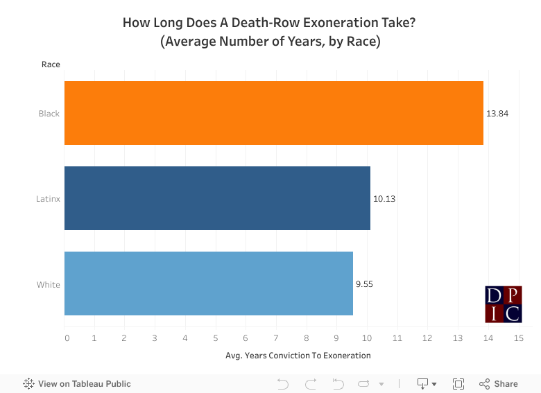 - Exoneration took significantly longer for Black defendants who were wrongly convicted and sentenced to death. DPIC found that it took Black death-row exonerees an average of 4.3 years longer to be cleared than their white counterparts. African Americans have accounted for 12 of the 13 post-Furman wrongful convictions that have taken 30 years or longer to exonerate.