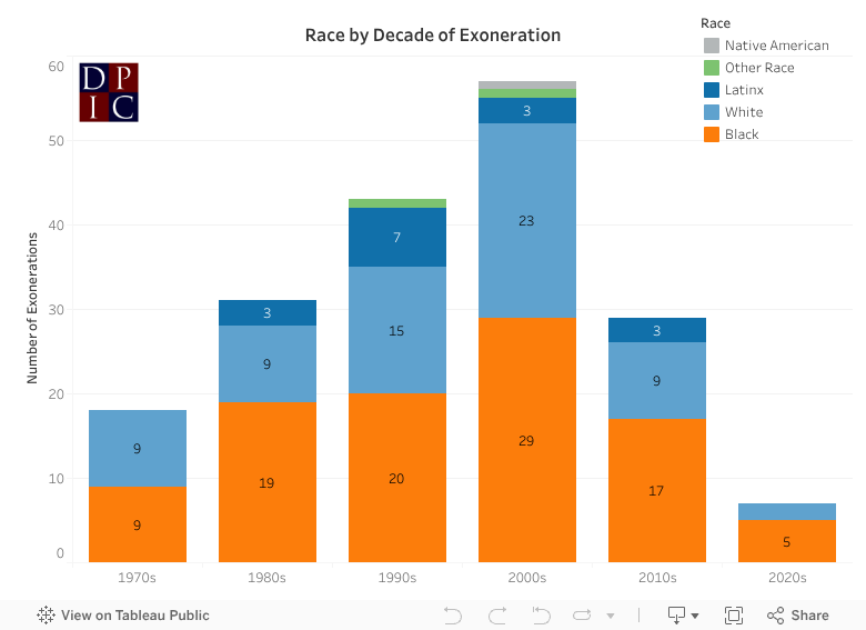 That, however, does not mean that DNA is not increasingly and tremendously important. Beginning with Mr. Bloodsworth’s exoneration, DNA has contributed to 21.9% of death-row exonerations, or 1 in every 4.6. It helped exonerate 8 former death-row prisoners in the 1990s, 10 in the 2000s, 5 in the 2010s, and another 5 in the first 13 months of the 2020s.