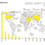 Amnesty International recorded at least 1,153 executions in 16 countries – a 31% increase from the 883 executions in 20 countries in 2022 – marking the highest total since 2015 but the lowest number of executing countries on record with the organization. As in previous years, execution totals do not include the estimated thousands of executions carried out by the world’s leading executioner, China, where execution data is considered a state secret; secrecy practices and challenges accessing information in Afghanistan, North Korea, Palestine, Syria, and Vietnam also created difficulties in identifying minimum totals. This worldwide increase was primarily driven by a 48% rise in executions in Iran, which accounted for 74% of executions worldwide. Iran (at least 853 executions), Saudi Arabia (172 executions), Somalia (at least 38 executions), the U.S. (24 executions), and Iraq (at least 16 executions) were the top five countries responsible for recorded executions. Compared to the prior year, all top five countries, except Saudi Arabia which experienced a slight decrease (196 in 2022), experienced an increase in executions.