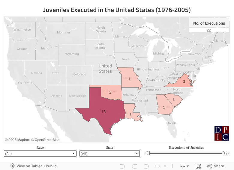 Twenty-two juvenile offenders were executed in the United States in the three decades between the Supreme Court decisions upholding the constitutionality of capital punishment in 1976 and the execution bar announced in Roper (see map, below). Those 22 executions comprised about 2% of the executions carried out in that time period. All but one occurred in the South and all were in the states that comprised the former confederacy.