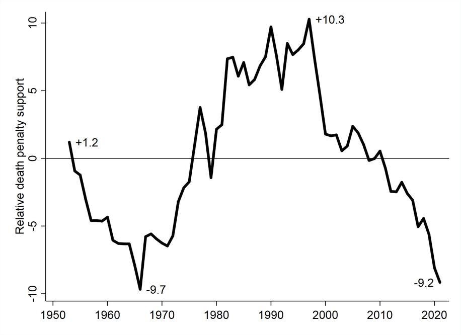 Decades of public opinion polling has shown significant changes in American views of the death penalty. In 1966, more Americans opposed the death penalty than favored it. After this point, death penalty support grew until the mid-1990s. Since that time there has been an overall downward trend in death penalty support. There has been an increased awareness of fairness and innocence concerns and public support of alternatives to the death penalty. A majority of Americans now say that alternatives to capital punishment are a better approach as punishment for murder.