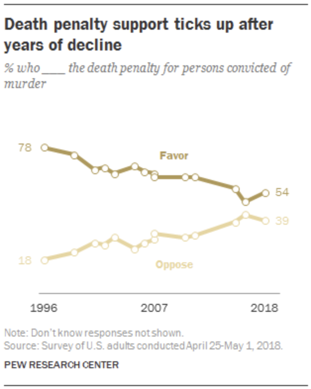 | Pew Research Center | 6/18 | Support for Death Penalty Ticks Up, Though Still Near Historic Lows |