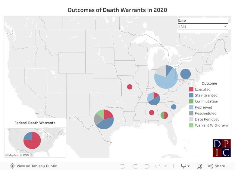 | MAY 2020 | 5 executions scheduled by 3 states | 1 execution; 1 execution halted by reprieve; 2 death warrants stayed; 1 death warrant removed. | |